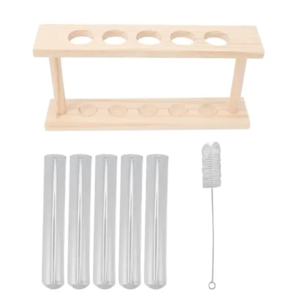 Rengöring är en bris med det lättstädade vattenröret i glas, vilket gör det återanvändbart många gånger om. Setet innehåller en ram i furu, 5 provrör och en provrörsborste för din bekvämlighet.