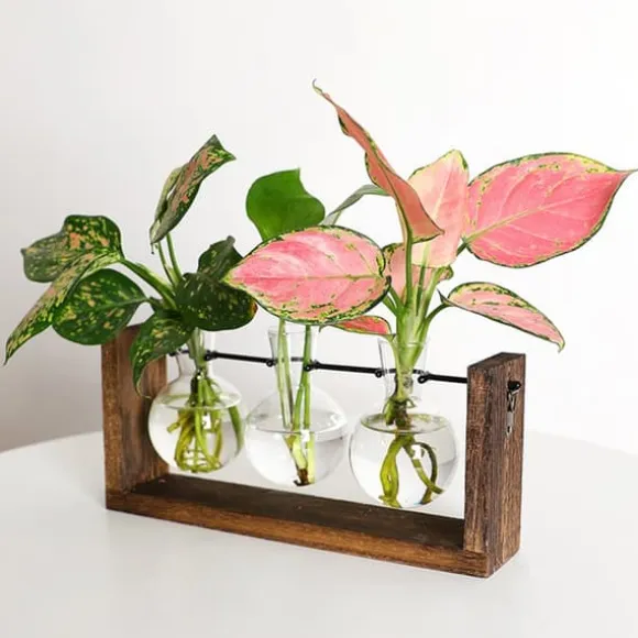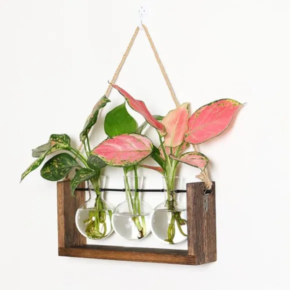 Stor förökningsstation: Denna retro träram med provrörsformade vaser erbjuder en elegant och vintage design. Idealisk för förökning och sticklingar, den ger gott om utrymme för växtrötter, främjar sund tillväxt och möjliggör enkel observation av tillväxtförhållanden.
