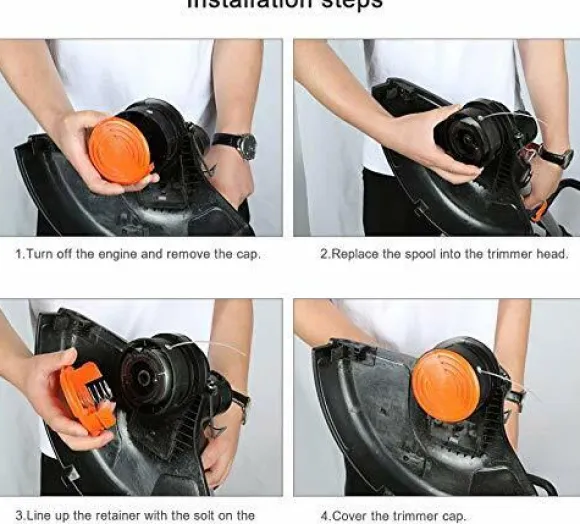 Trimmertråden är tillverkad av högkvalitativt nylon på en slitstark trådspole med skyddslock och fjäder.