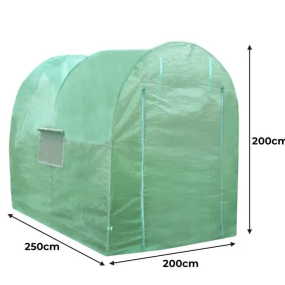 2,5 m högt och 2 m långt, detta polytunnelväxthus skapar en sluten miljö i perfekt storlek för dig att skapa ett paradis för dina plantor. Med gott om utrymme för dig att organisera dina växter, kan deras eget mikroklimat skapas problemfritt. Detta tält skapar högre temperaturer och luftfuktighet för frukt, grönsaker och andra växter som du odlar utomhus. Det kraftiga PE-skyddet skyddar dina växter från dåligt väder som regn, frost, hård vind och UV-strålar. Extra staglinor och stödstänger i båda ändar ge ökad stabilitet för blåsiga dagar!