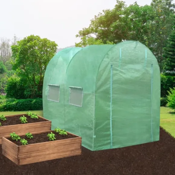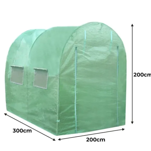 3 m högt och 2 m långt, detta polytunnelväxthus skapar en sluten miljö i perfekt storlek för dig att skapa ett paradis för dina plantor. Med gott om utrymme för dig att organisera dina växter, kan deras eget mikroklimat skapas problemfritt. Detta tält skapar högre temperaturer och luftfuktighet för frukt, grönsaker och andra växter som du odlar utomhus. Det kraftiga PE-skyddet skyddar dina växter från dåligt väder som regn, frost, hård vind och UV-strålar. Extra staglinor och stödstänger i båda ändar ge ökad stabilitet för blåsiga dagar!