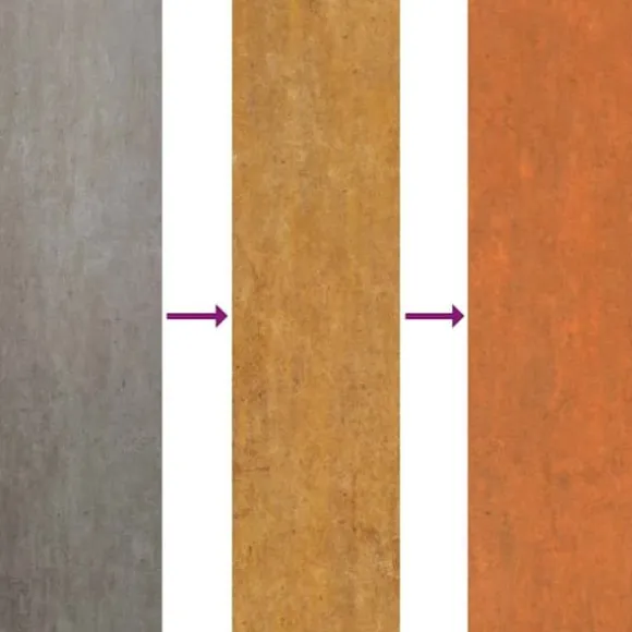 - Produkten är inte rostig än och har en normal metallfärg vid leverans, men rost kommer att bildas över tid. Du kan påskynda rostprocessen genom att spraya den med tvålvatten och saltvatten. För att hålla dina kläder fläckfria, undvik kontakt med rostskiktet.