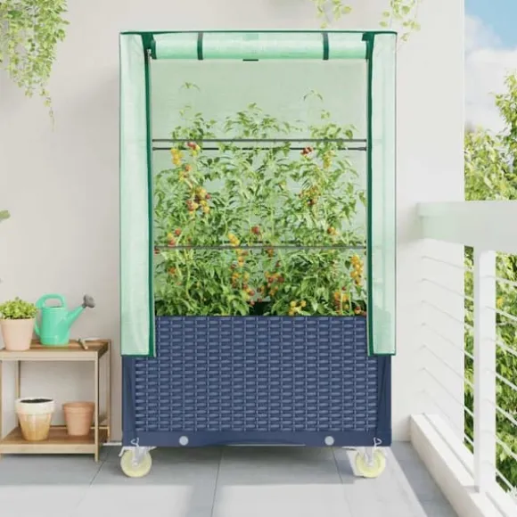 - Design i rottingstil: Den upphöjda odlingslådan med design i rottinglook ger en känsla av naturlig charm utomhus.
