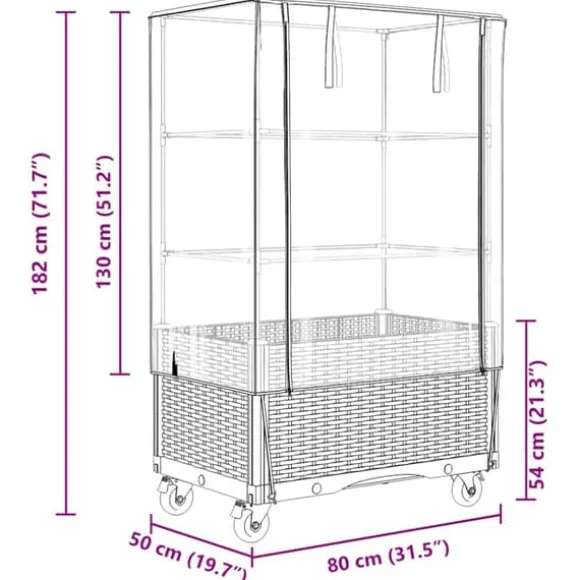 - Mått växthus: 50 x 80 x 130 cm (L x B x H)