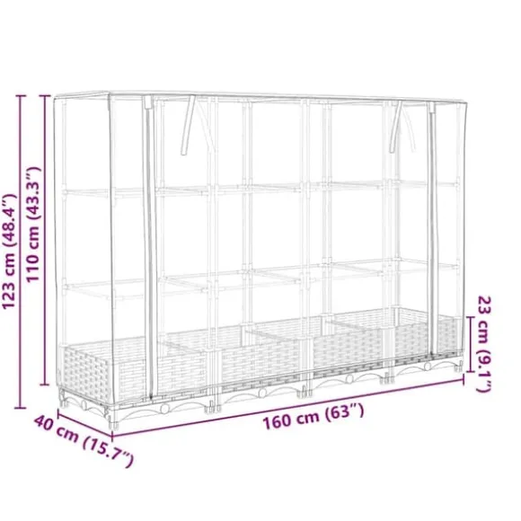 - Mått växthus: 160 x 40 x 110 cm (L x B x H)