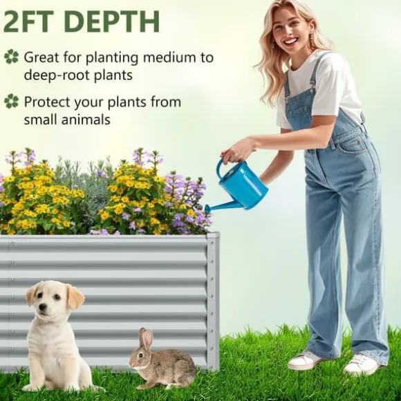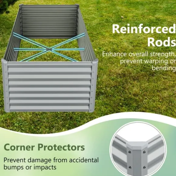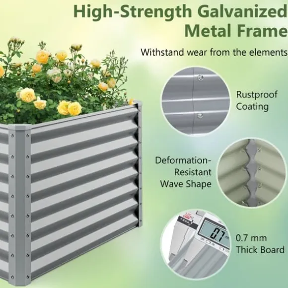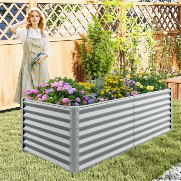 Denna rymliga Metall Rektangulär Upphöjd Trädgårdsbädd har en öppen botten design för optimal luft- och vattendränering. Dess robusta konstruktion och släta yta gör den idealisk för att odla olika växter och enkel att underhålla.