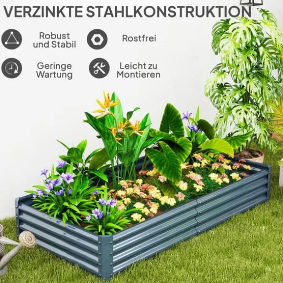 Denna upphöjda odlingsbädd är utformad för att förbättra din trädgårdsupplevelse genom att erbjuda en hållbar och väderbeständig planteringplats, idealisk för grönsaker, blommor och örter. Dess öppna botten säkerställer utmärkt dränering och rotutveckling, medan stabiliserande stöd förbättrar den övergripande stadgan för långvarig användning.
