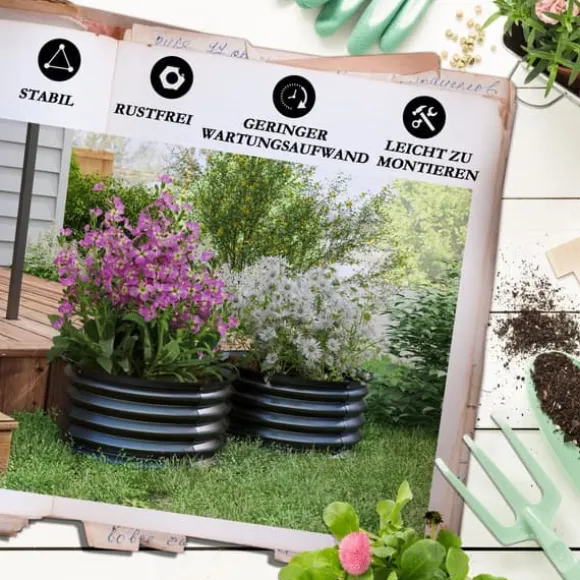 - Inkluderar 2 galvaniserade planteringskärl, 16 skruvar och 1 manual