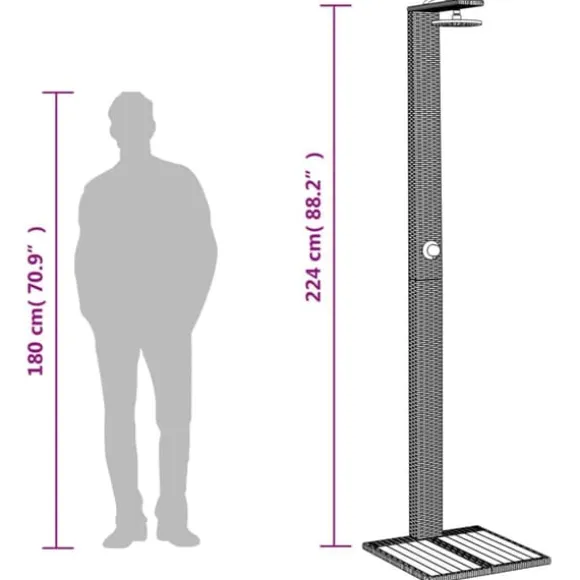 - Snygg och trendig: Med sin tidlösa design utstrålar poolduschen en rustik charm och blir ett iögonfallande tillskott till din trädgård eller bakgård.