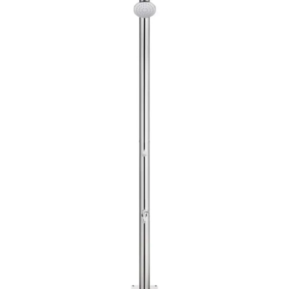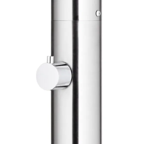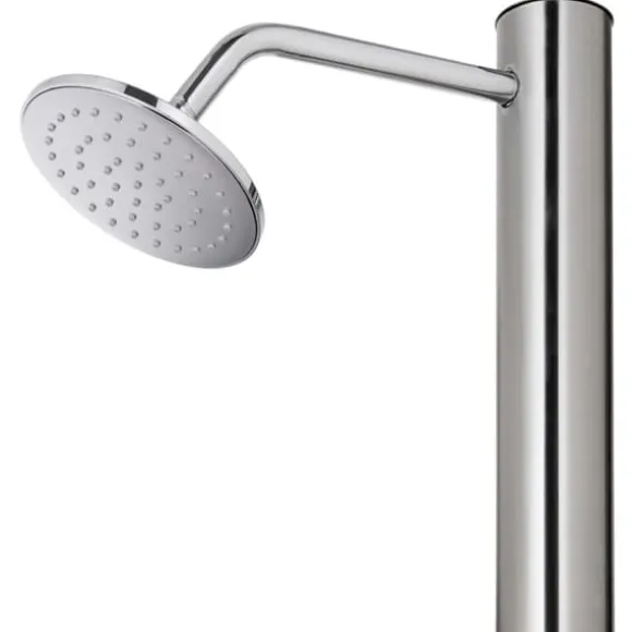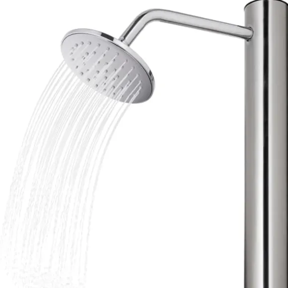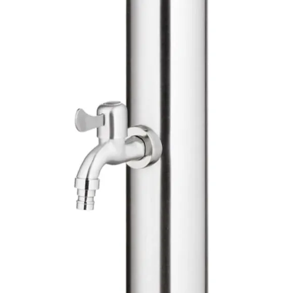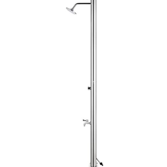 Denna utedusch är tillverkad i rostfritt stål vilket gör den väderbeständig. Duschsystemet har en huvuddusch och en fotkran för att möta dina olika behov.