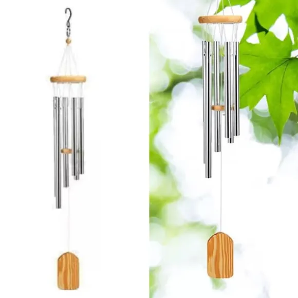 Denna eleganta vindklocka är gjord av metall, vilket säkerställer hållbarhet även när den utsätts för väder och vind. Den producerar skarpa och behagliga ljud när vinden försiktigt flyttar rören, vilket skapar en mjuk och vacker melodi som ger komfort och lugn. Dess eleganta utseende gör den till en perfekt dekoration för din uteplats, trädgård eller hem. Det fungerar också som en fantastisk gåva för att uttrycka dina bästa önskningar till speciella vänner, mamma eller familjemedlemmar.