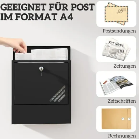 – Säker förvaring av post: Tack vare den låsbara konstruktionen med två kraftiga lås förvaras din post säkert och skyddas mot obehörig åtkomst.