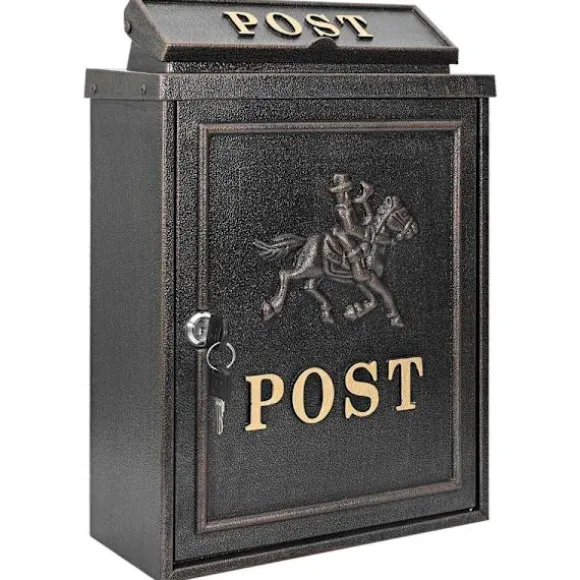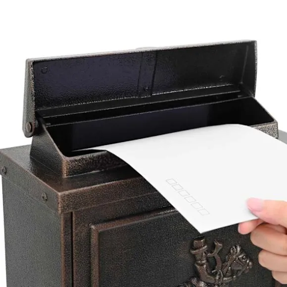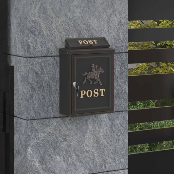 Denna vintage väggmonterade brevlåda ger en charmig touch till din utomhusmiljö. Den kombinerar en stil som påminner om svunna tider med moderna funktioner. Tillverkad av slitstark gjuten aluminium, behåller den sitt utseende och struktur oavsett vädret. Som både en dekorativ och praktisk detalj ser den till att din post förblir säker.