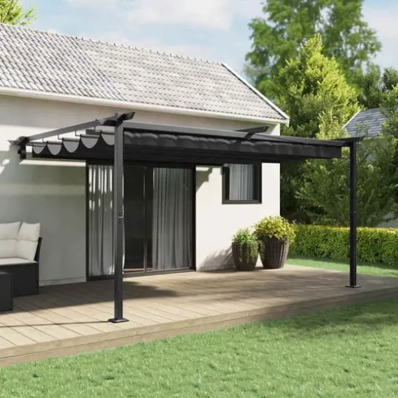Den väggmonterade gazebon med sitt utdragbara tak erbjuder en modern estetik som passar perfekt i varje trädgård eller terrass. Genom att kombinera stil med praktisk funktion ger denna gazebon en mångsidig skuggad tillflyktsort för familjesammankoster eller lugn avkoppling. Dess minimalistiska form och robusta material säkerställer att den kompletterar moderna utomhusutrymmen och förbättrar både ditt hems yttre skönhet och utomhusfunktionalitet.