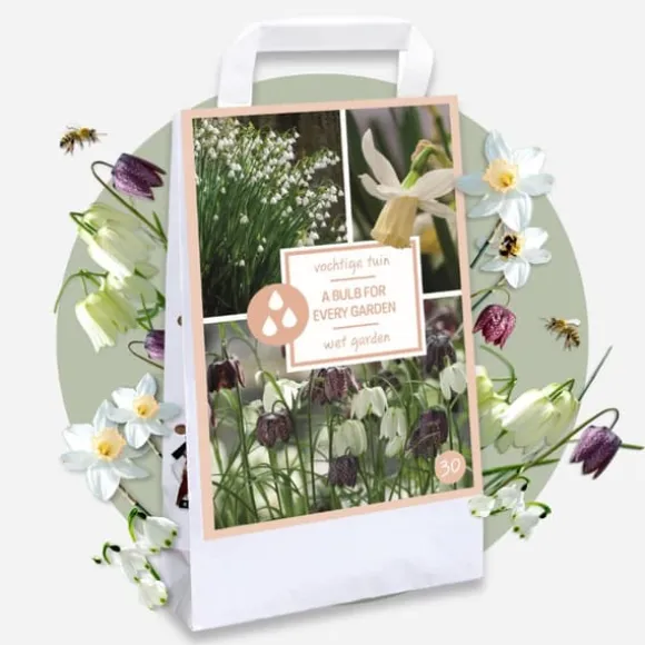 Lökarna i denna låda är vinterhärdiga och perfekt anpassade för regniga förhållanden. Plantera dem mellan september och december i fuktig, väldränerad jord. Vanligtvis behövs ingen extra bevattning; regnet sköter det. Se dock till att jorden inte blir helt översvämmad eller står vattenmättad under längre perioder. Efter blomningen kan du låta bladen vissna naturligt — detta hjälper lökarna att lagra energi inför nästa säsong. Låt lökarna vara kvar i jorden: de kommer tillbaka varje vår. På så sätt skapar du år efter år en färgstark och vädertålig trädgård som frodas under fuktiga förhållanden.