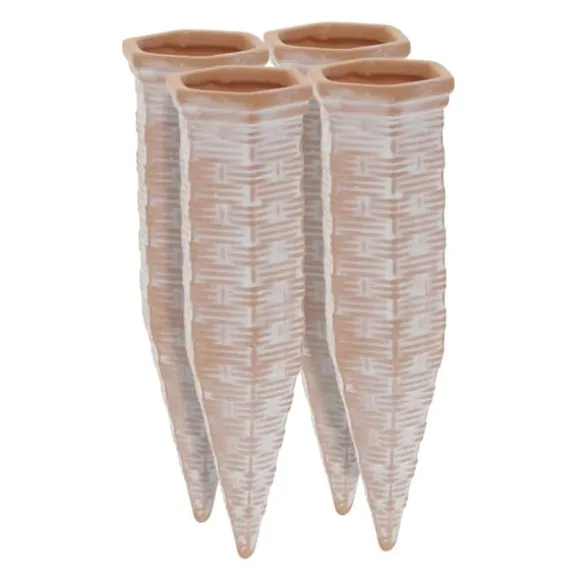 Håll dina växter friska och vattnade när du är bortrest med detta set om fyra mönstrade lerbevattningsspikar. Dessa spikar ger automatisk, jämn bevattning genom att gradvis släppa ut vatten i jorden, vilket gör dem idealiska för hektiska livsstilar eller semestrar. Sätt bara i en fylld flaska och låt spikarna ta hand om dina växter.