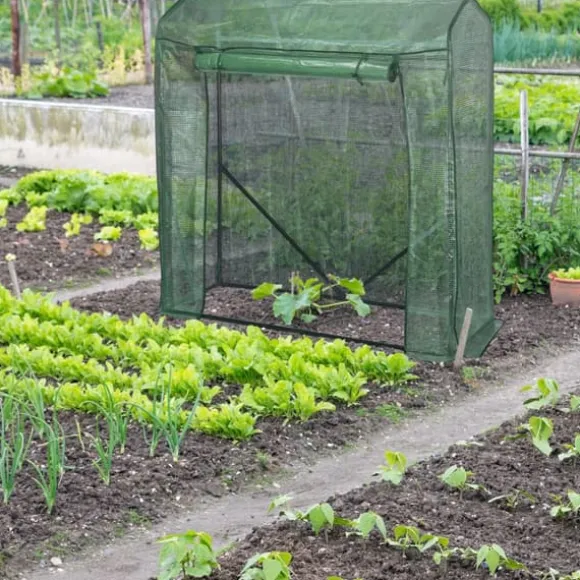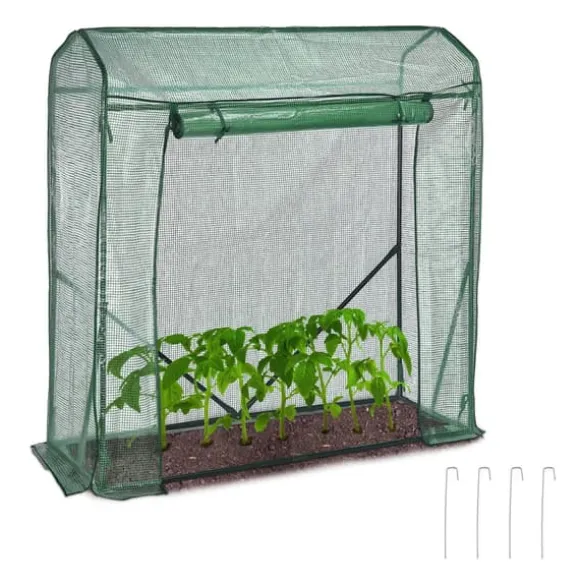 Odla hälsosamma och läckra tomater samt andra grönsaker i din trädgård med detta rymliga växthus, utformat för att ge optimal värme och skydd. Dess genomskinliga PE-överdrag och förstärkta metallram säkerställer en stabil miljö, medan den uppfällbara dörren ger enkel åtkomst och ventilation. Detta mångsidiga växthus är även lämpligt för övervintring av växter med begränsad härdighet.