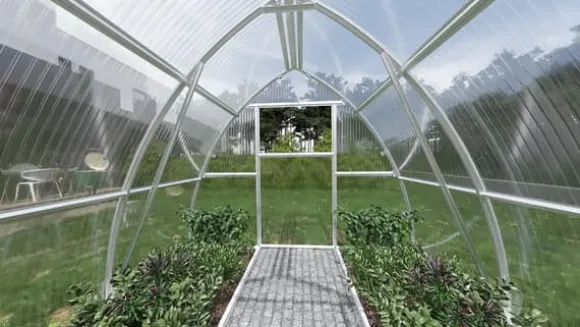Växthuset ARROW-ramen är tillverkad av en särskilt stark galvaniserad profilerad stålprofil (56 mm, tjocklek 1 mm), som tål tunga snöbelastningar och säkerställer strukturens livslängd. Tack vare användningen av en ny bredare profil har mängden delar till växthuset minskat, vilket underlättar monteringen. Bågformade stöd placeras var 100:e cm. Växthuset har en dubbeldörr med ventilationsfönster i ena änden och ventilationsfönster i andra änden. PIL växthushöjd 2,4m, bredd 3,0m, bassatsens längd är 2 meter, men med hjälp av ytterligare 2-meters förlängningar kan växthusets längd utökas till den storlek som köparen kräver. Ramen fixeras genom att gräva ner ramens T-formade ben (30 cm) i jorden. Arrow-växthuset är utrustat med valvförstärkningar för varje båge, vilket säkerställer snölaststabilitet upp till 360 kg/m2, vilket motsvarar ett lager nysnö på ca 180 cm. För denna modell är det möjligt att dessutom köpa ett taklucka och en automatisk (gas) lucköppnare.