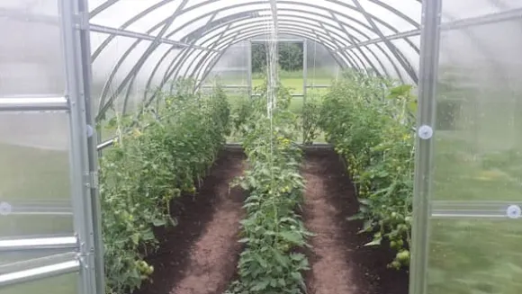 Växthuset har en dubbeldörr i ena änden och ett fönster i den andra änden. Dessutom kan du köpa luckor, gångavskiljare, bord, automatisk lucköppnare, extra dörrar, ett fack inne i växthuset, bevattningssystem.