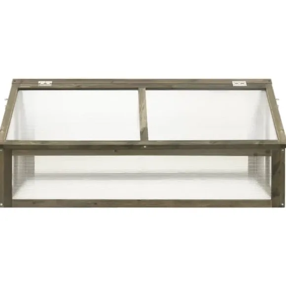 Detta trädgårdsväxthus är tillverkat av polykarbonat och massivt granträ som är stabilt och hållbart. Det är tillräckligt djupt och brett för att rymma en stor mängd jord och har gott om plats för dina växter, grönsaker, örter och blommor. Det är enkelt att vattna eller ta ut växterna tack vare det gångjärnsförsedda locket.