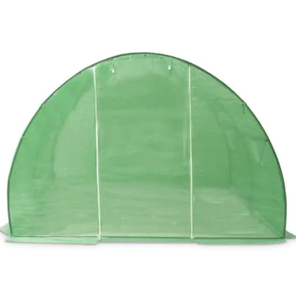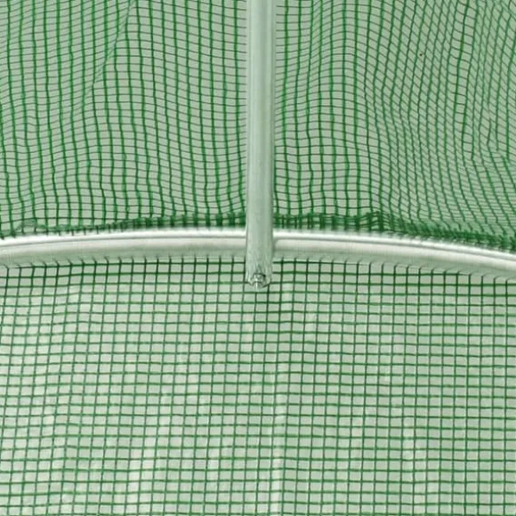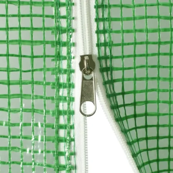 Detta växthus blir en bra lösning för att skydda dina plantor mot vind, regn, sol och skada från fåglar. Växthuset är tillverkat av 140g/m² PE-nättyg som är 25% tyngre än många konkurrenters standard nättyg. Det förhindrar därför påverkan från externa influenser ännu bättre. Växthuset har en stadig och rostfri galvaniserad stålram för extra stabilitet. Växthuset är utrustat med fyra fönster på 38×38 cm för ventilering samt en dörr på 100×185 cm.