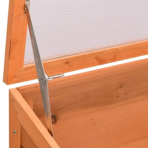 Detta trädgårdsväxthus i trä är tillverkat av polykarbonat och starkt trä som är hållbart. Det är tillräckligt djupt och brett för att rymma en stor mängd jord och har gott om plats för dina växter, grönsaker, örter och blommor. Det är enkelt att vattna eller ta ut växterna tack vare det gångjärnsförsedda locket.
