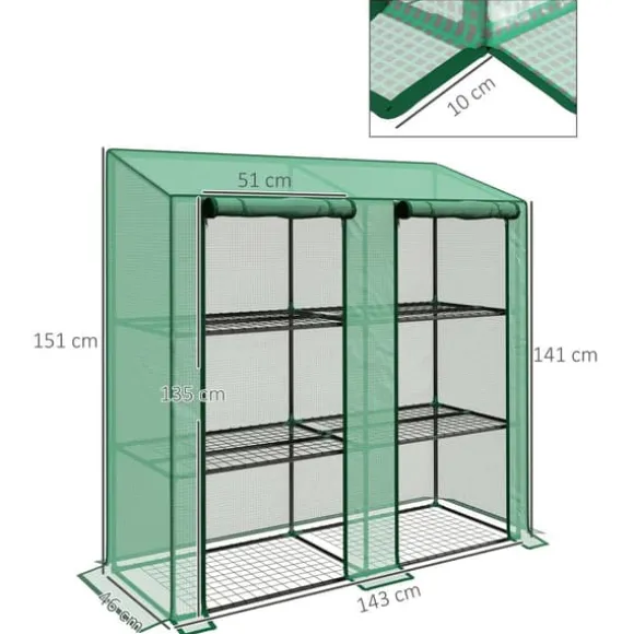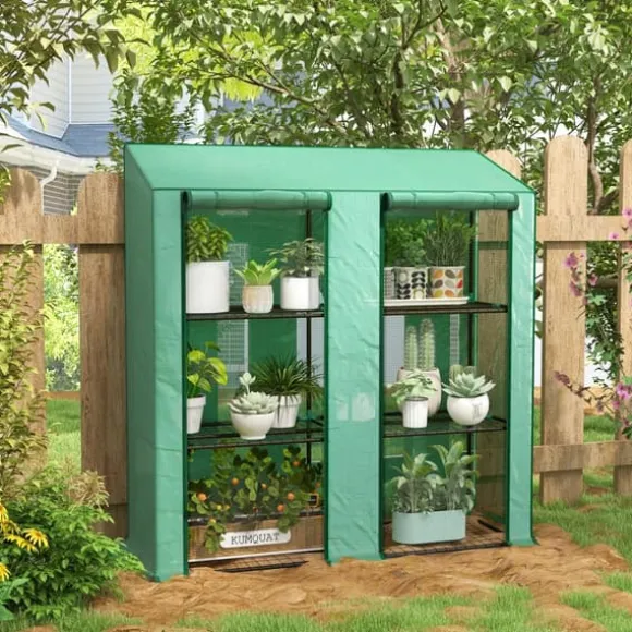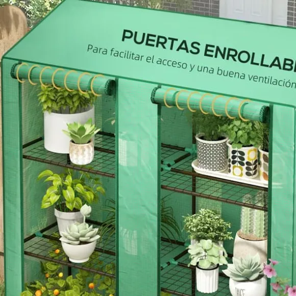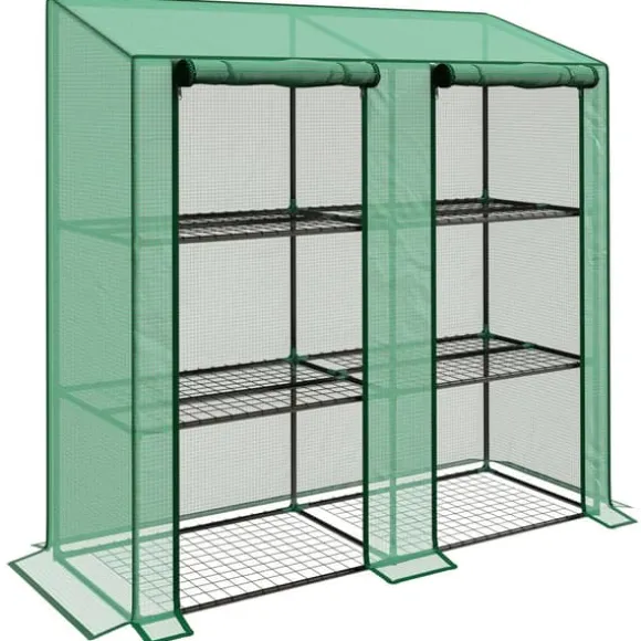 Skydda dina växter mot kyla, vind och UV-strålning med ett kompakt miniväxthus med 6 trådhyllor och förstärkt plastöverdrag. Perfekt för balkong, uteplats eller små trädgårdar – organiserat, stabilt och lätt att nå via två rullbara dragkedjedörrar.