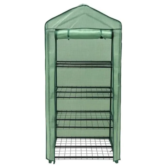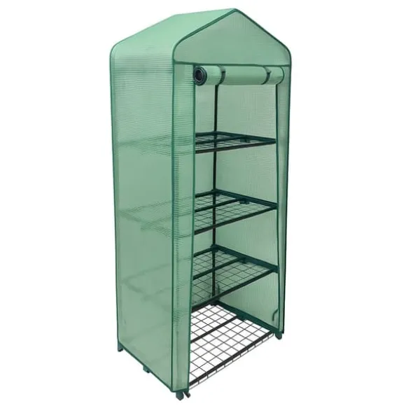 Ett robust växthus med 4 hyllplan och PE-överdrag