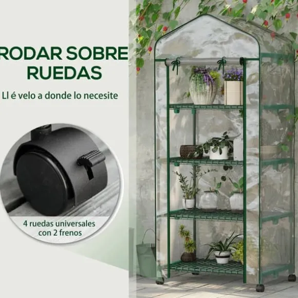 Enkelt att flytta och användaMed fyra hjul kan växthuset snabbt rullas till en soligare eller mer skyddad plats. Den uppfällbara dörren med dragkedja gör vattning och skötsel lätt.