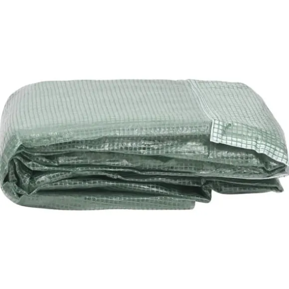 Växthusöverdraget är tillverkat i PE, som är tyngre än vanliga nättyger. Växthustyget har sex fönster för ventilation och en dörr.