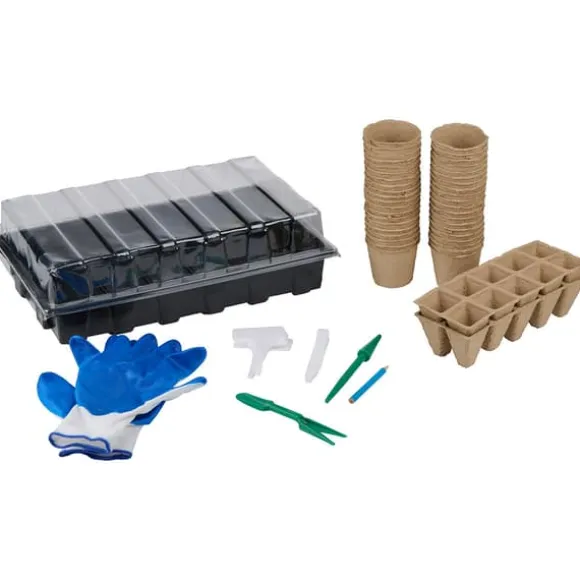 – Innehåll: 40 krukor, 2 brickor (10 fack/st), 2 planteringsverktyg, 10 etiketter, 10 plantmarkörer, 1 penna, 1 par handskar