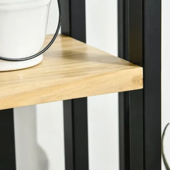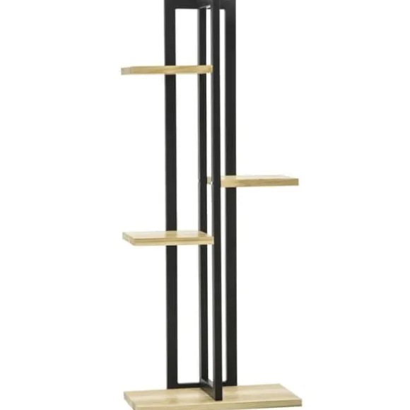 – Industriell design: Med sin kärna av svart metall och trähyllor är denna blomställning helt i industriell stil. Dess eleganta design harmonierar enkelt med olika inredningsstilar.