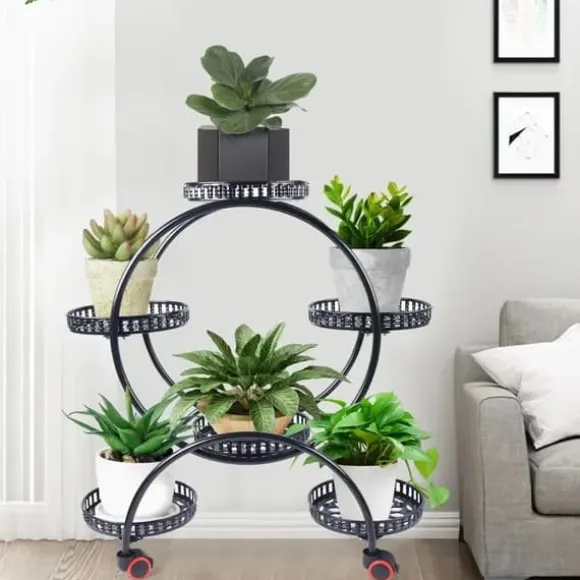 Metallblomställ med hjul i svart – smidig och stilren växtförvaringDetta robusta blomställ i lackerat metall har sex rymliga hyllor och rullar enkelt till valfri plats. Den svarta, eleganta finishen och de fina linjerna lyfter fram dina växter i vardagsrum, sovrum, kontor eller på skyddad uteplats.