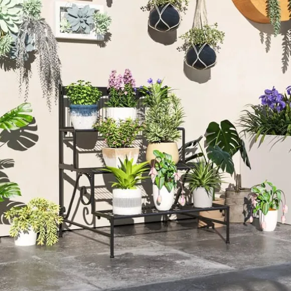 Elegant växtställ i metall med 3 nivåer – för ute och inneGe hörnet en stilfull uppgradering: detta svarta växtställ med tre nivåer använder en steglik design som ger dina växter mer ljus och frisk luft. Den robusta metallramen med pulverlack är formstabil och hållbar – perfekt för att visa upp växter och dekoration, både hemma och på balkongen eller i trädgården.