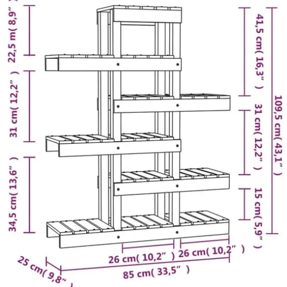 - Gott om utrymme: Detta växtställ har hyllor i olika höjder med tillräckligt med utrymme för att visa dina favoritkrukväxter eller trädgårdsprydnader.