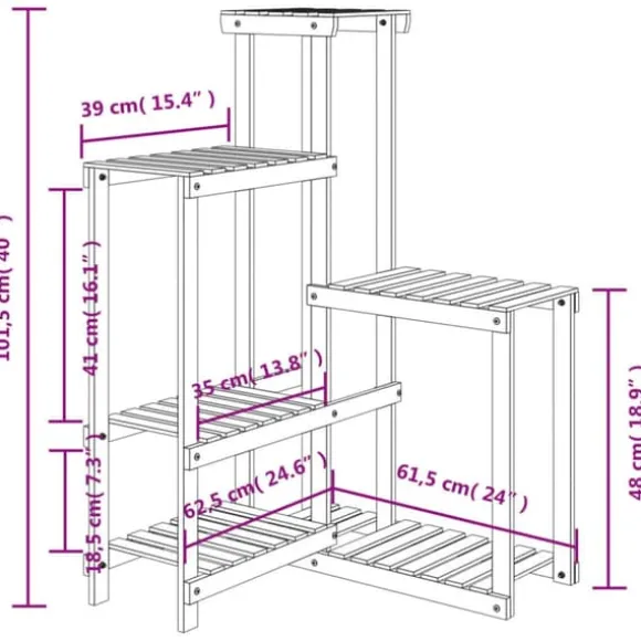 - Slitstarkt granträ: Detta växtställ är tillverkat av granträ, som är robust och hållbart, vilket garanterar många års användning. Tack vare dess vackra hantverk har detta växtställ utmärkt fuktsäker förmåga och väderbeständighet.