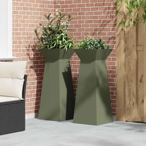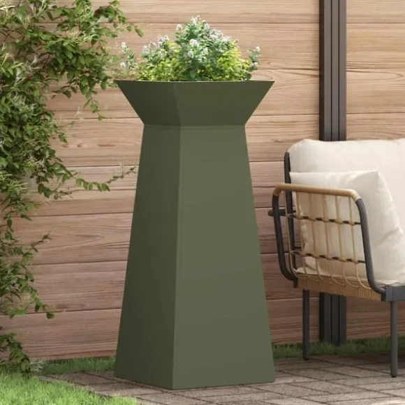 Det här fyrkantiga växtstället är perfekt för att visa upp dina växter och ge ditt hem och utomhusutrymmen ett lyft. Gjort av stark metall med en olivgrön matt finish, passar det in med många olika stilar, oavsett om det står på din balkong eller inne i hemmet.