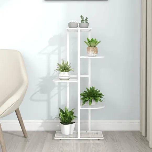 Blomstället är gjort av metall som är robust och hållbart, vilket garanterar många års användning. Växtstället har fem hyllor med gott om plats att visa upp dina fina växter. Dessutom torkas stället enkelt rent med en fuktig trasa.