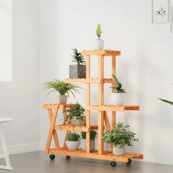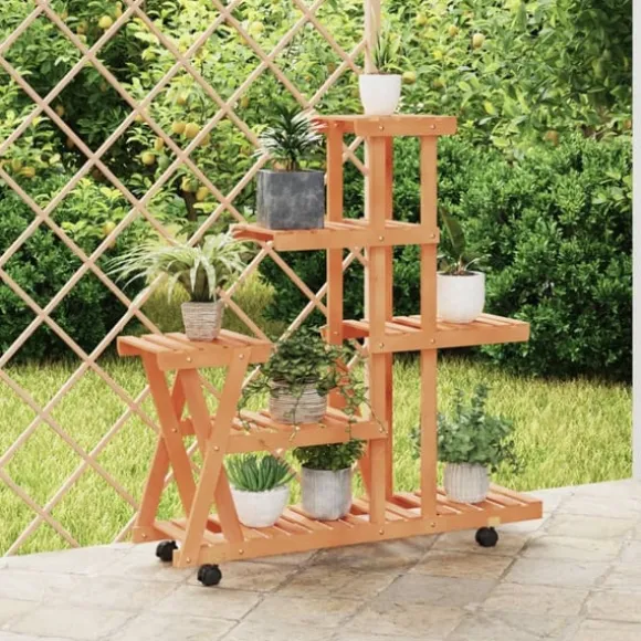Detta växtställ i trä är ett bra val att ställa och visa upp dina växter och andra dekorativa föremål på.