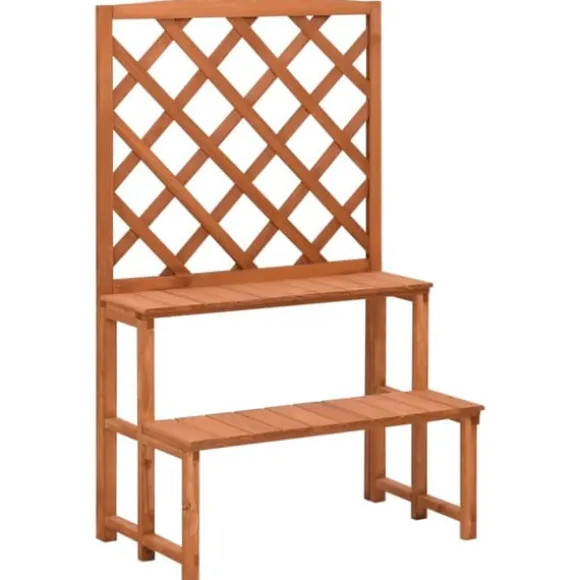 Detta växtställ är tillverkat i massivt granträ och är robust och lämpligt för utomhusbruk. Växtstället har hyllor i två nivåer med gott om plats för att förvara eller organisera krukväxter och trädgårdsornament. Stegdesignen visar upp blommor på ett fint sätt och hjälper växterna att få mer sol och växa bättre. Dessutom är spaljén ett utmärkt stöd för klätterväxter.