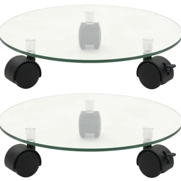 Ovansidorna är tillverkade i härdat glas, som är starkare och säkrare än vanligt glas. Tack vare deras 360° roterbara svänghjul kan du enkelt flytta runt växtställen. Ett av hjulen är utrustade med en broms så att västställen kan stå still när det behövs.