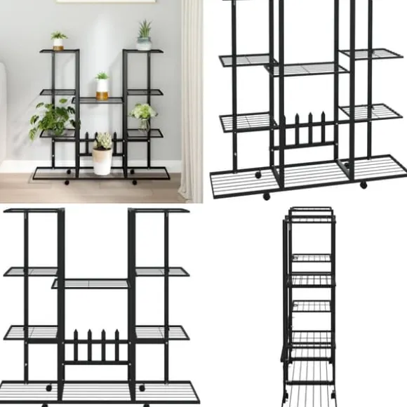 Växtställ på hjul 94,5×24,5×91,5 cm svart järn Detta växtställ är en perfekt lösning för att förvara och visa upp växter och andra saker. Växtställ på hjul 94,5×24,5×91,5 cm svart järn (1x) Din beställning kommer att levereras i ett paket. Så snart din beställning har packats får du omedelbart din leveransinformation från oss. Vi hoppas att du blir nöjd med ditt köp.