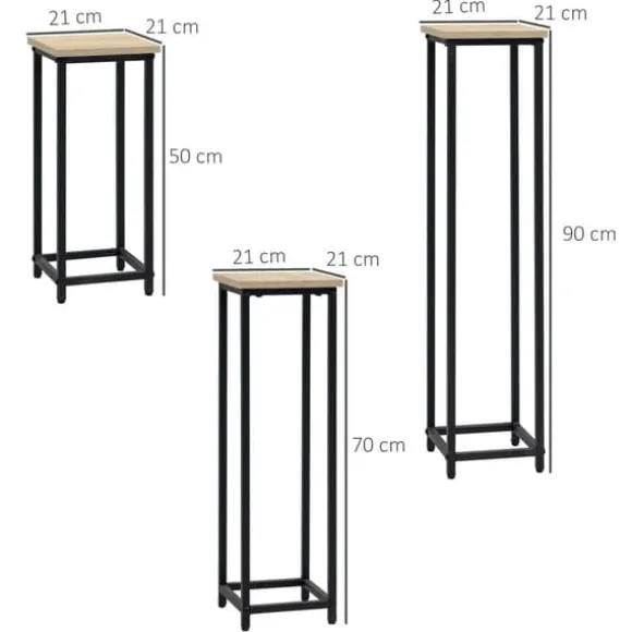 – Information om blomställningssetet: 21L x 21B x 50/70/90Hcm. Viktkapacitet: 30 kg (vardera). Artikelvikt: 6 kg. Montering krävs
