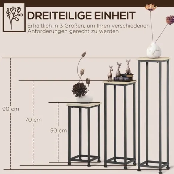 – 3-delat set: Detta 3-delade set innehåller växtställ i olika storlekar som är perfekta för att visa upp olika växter eller placera små prydnadsföremål för inomhus- och utomhusbruk.