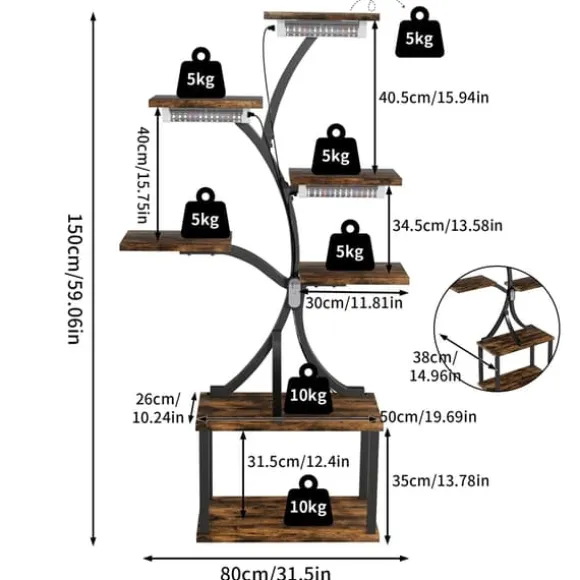 - främja växttillväxt: utrustad med led-växtlampor som ger det optimala ljusspektrumet, främjar denna hållare en hälsosam växttillväxt även i svaga ljusförhållanden, vilket säkerställer att dina växter blomstrar.