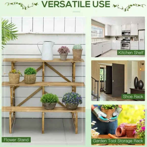– Hög stabilitet tack vare de stabila fötterna;Växtstege i naturfärg för blommor eller växter