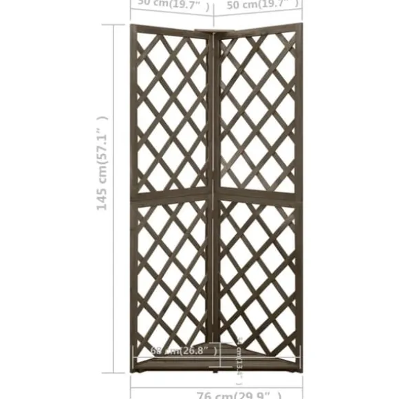 Denna spaljé är tillverkad i massivt granträ, vilket gör den stadig och lämplig för utomhusbruk. Den är ett bra stöd för rosor, murgröna och andra klätterväxter. Dessutom får träspaljén plats i ett hörn och tar upp mindre plats.