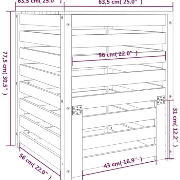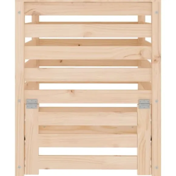 - Massivt furuträ: Massivt furuträ är ett vackert naturmaterial. Furuträ har raka fibrer, och knutarna ger materialet sin rustika utstrålning. Denna kompostbehållare är gjord av massivt furu, vilket gör den robust och stabil.