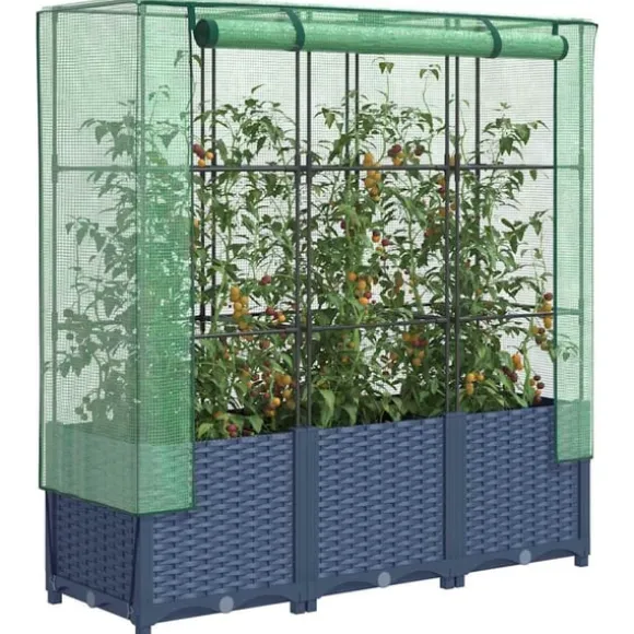 - Robust konstruktion: Den upphöjda odlingslådan i polypropen har en robusta järnram på toppen, vilket gör att växter kan växa och klättra genom den.
