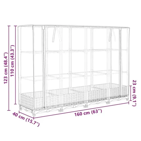 - Mått växthus: 160 x 40 x 110 cm (L x B x H)